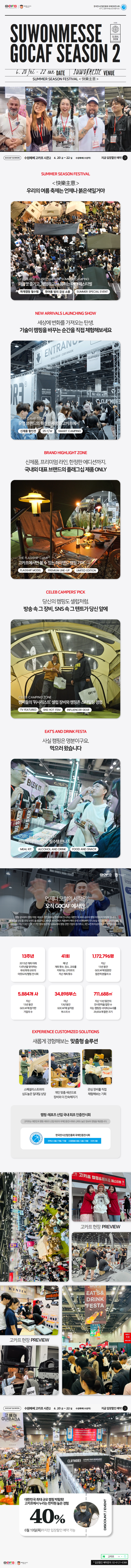 ✅13년 간 약 117만 캠퍼들이 방문하고 3만 4천여 개의 부스가 설치된 대한민국 대표 캠핑&레포츠 페스티벌 고카프!
