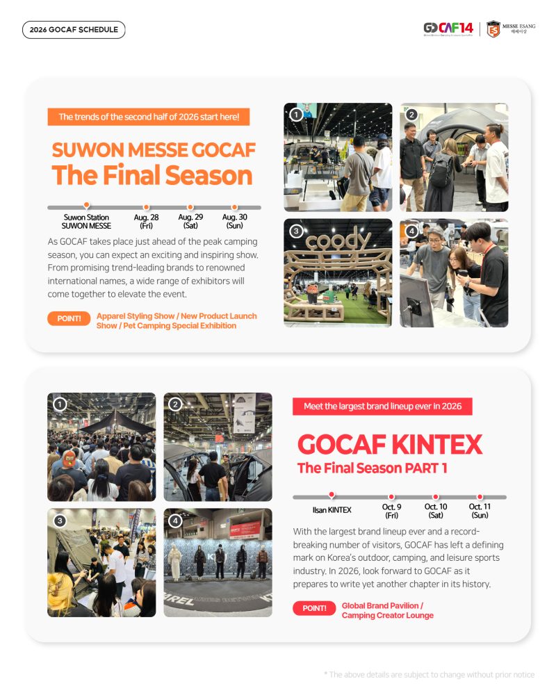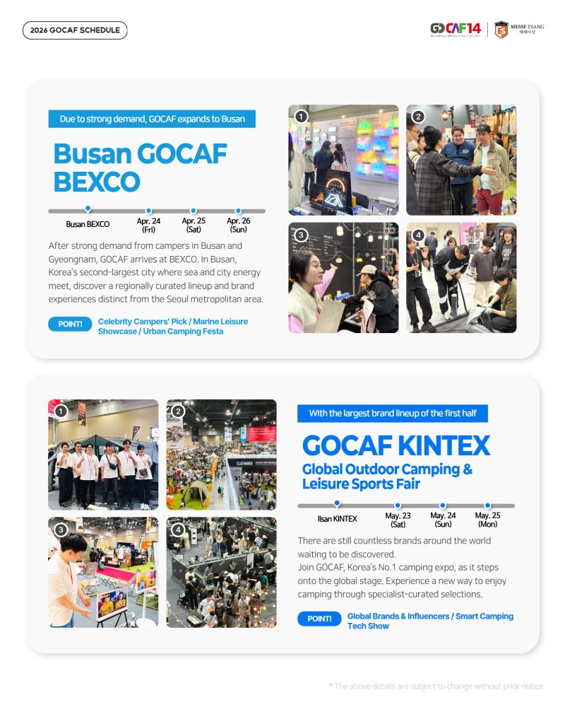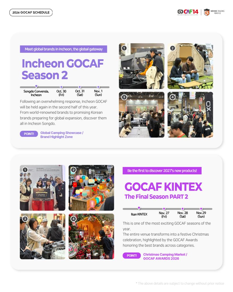 GOCAF is Korea’s leading platform driving camping and leisure sports trends across Asia.