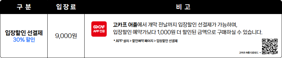 · 고카프 어플에서 입장할인 선결제 시 예약가에서 1,000원 추가 할인